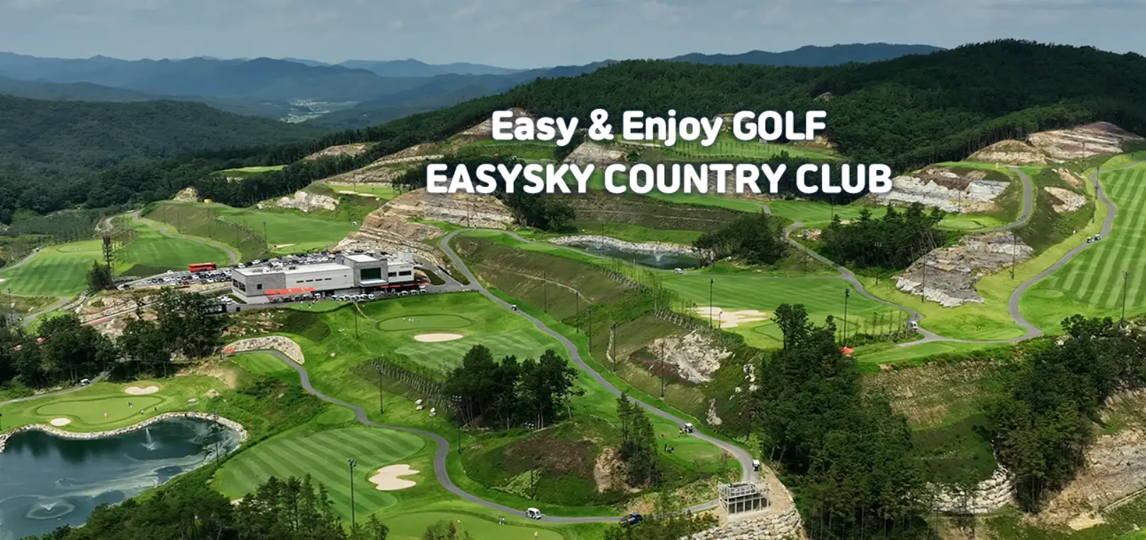 이지스카이 cc 코스는 이지 코스 9홀, 스카이 코스 9홀로 총 18홀, Par 72, 총 6,313m 전장이에요. 사계절 따뜻한 남서향 분지에 조성된 이지스카이 cc는 자연친화적이고 편안한 코스로 설계되어 있어요.