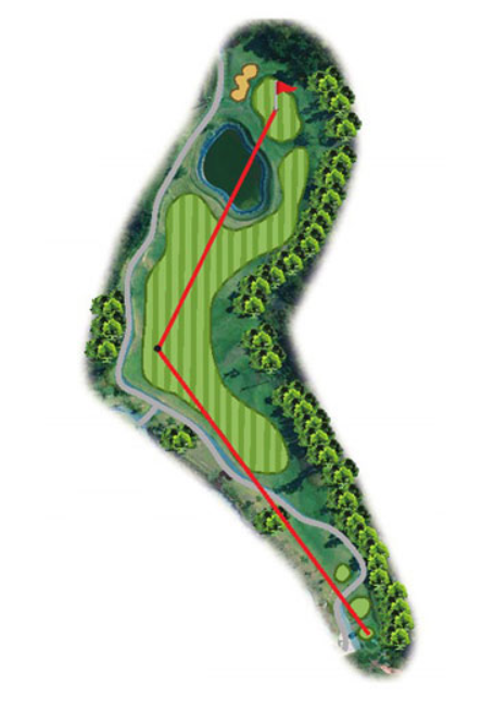 티샷은 힘차게 세컨 샷은 정교하게 치는 것이 좋아요. 하향으로 단차가 커서 평소 자신의 비거리보다 길게 봐야 하고 그린을 감싼 연못을 고려해 최대한 연못 가까이 가 신중히 그린을 노리는 전략이 필요한 홀이에요.