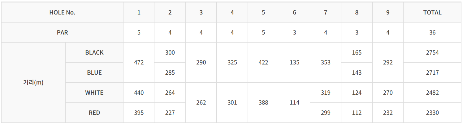 더힐 cc 코스는 계룡산의 봄, 여름, 가을, 겨울 사계절의 변화를 느끼며 새로운 에너지를 재충전하여 휴식과 여유, 낭만을 누릴 수 있는 9홀, Par 36, 블랙티 기준 총 2,754m 전장 규모예요.