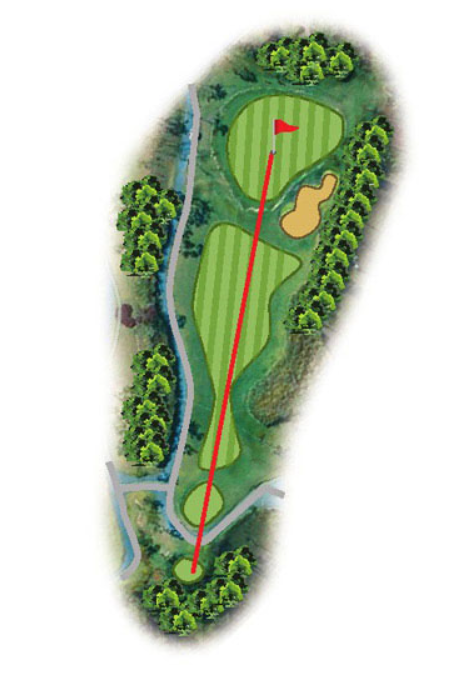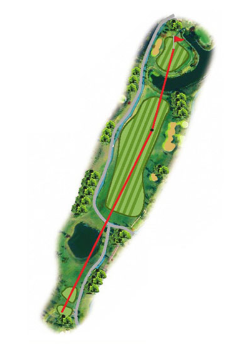 직선으로 쭉 뻗은 비교적 짧은 거리의 오르막 롱 홀이에요. 티 바로 앞의 연못과 연못 위에서의 티샷이 특징이고 홀 우측 카트 도로가 OB존으로 페어웨이 벙커 사이 홀 중앙을 보고 신중이 티샷을 해야 해요. 세컨 샷은 오르막을 감안하여 1 클럽 더 계산하면 도움이 많이 될 거예요.
