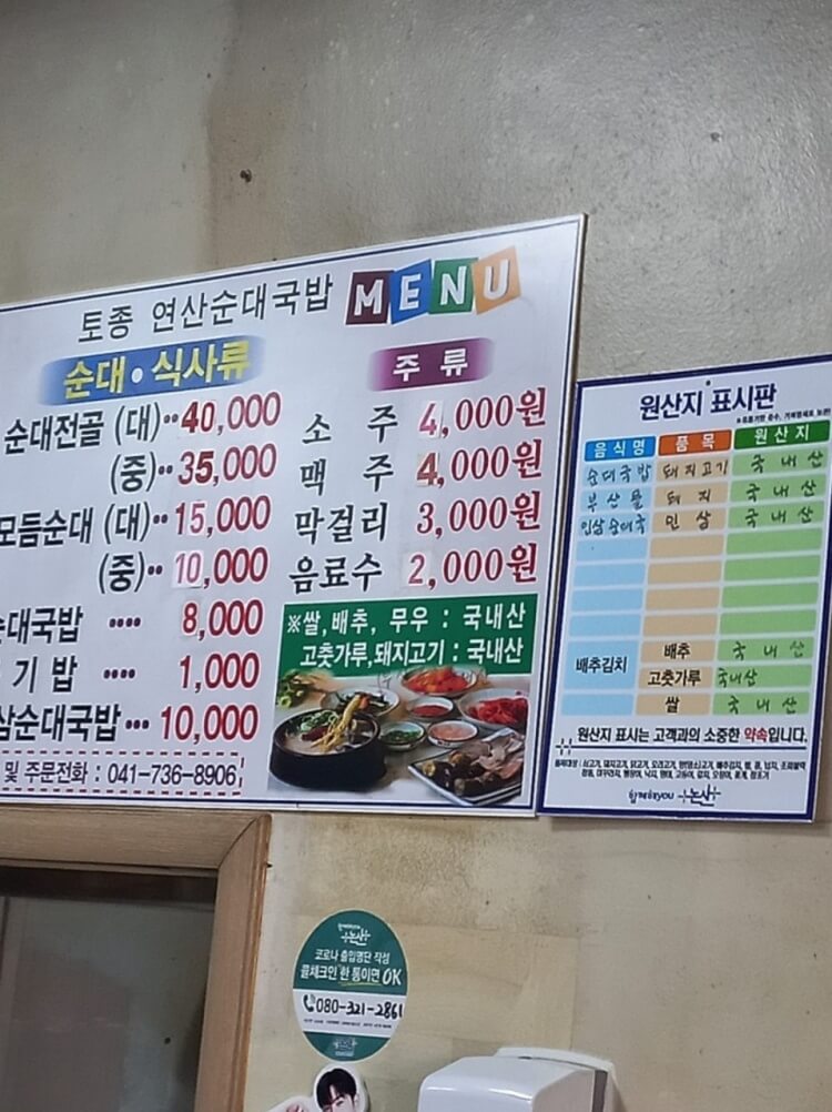 더힐 cc 맛집 중 현지인 맛집으로 유명한 토종 연산 순대국밥이에요. 메뉴는 순대전골, 모둠순대, 순대국밥 이렇게 있어요. 연산이 피순대가 유명한데 그래서 그런지 순대국밥 안에 머리 고기, 내장, 피순대가 가득 들어 있더라고요. 국물이 깔끔하니 너무 맛있어요.