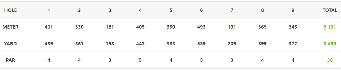 몽베르 cc 오똔 코스는 9홀, Par 36, 총 3,191m 전장이에요.
