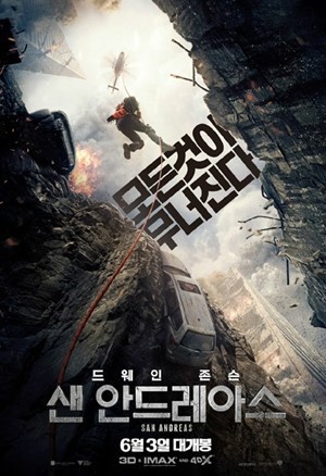 지진을 배경으로 한 재난 영화 샌 안드레아스. 샌 안드레아스는 미국 캘리포니아주를 가로지르는 1000km의 거대한 해저 단층으로 실제로 현재 지진 발생 가능성이 가장 높은 지역이라고 한다. 실제로 지진이 난다면 영화 속 장면들과 유사할 테니 현재 캘리포니아주에 사는 관객들에게는 현실적인 공포감으로 다가왔을 것 같다. 두 차례에 걸친 거대 지진과 쓰나미로 순식간에 지옥으로 변해버린 샌프란시스코. 러닝타임 내내 자연스럽게 CG로 구현된 거대지진을 보여줌으로써 인간이라는 존재가 자연의 대자연 앞에서 얼마나 약한 존재인지 느낄 수 있었다. 뻔한 스토리로 영화가 내가 생각한 예상대로 흘러갔지만 주연이 드웨인 존스라서 좋았고 압도적인 스케일과 뛰어난 특수효과로 지루할 틈 없이 볼 수 있었다.