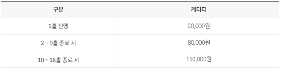 ◎ 경기 중단 시 캐디피 ※ 22년 6월 1일(수)부터 홀별 캐디피 적용
