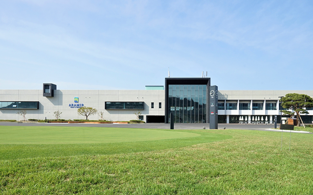 아라미르는 바다를 뜻하는 순우리말인 '아라'와 용을 뜻하는 순우리말 '미르'의 합성어예요. 이름 너무 예쁘죠? 아라미르 CC는 정통 영국 링크스 코스의 경관적인 장점을 최대한 살리되 어렵지 않게 플레이를 즐길 수 있도록 페어웨이를 넓게 설계하였으며, 탁 트인 푸른 대지의 지평선을 느낄 수 있도록 수목을 최소화하되 단조로움을 극복하기 위해 다양한 색상의 조경수와 식생을 통해 홀을 기억할 수 있도록 코스 조경에 차별을 두었어요. 창원 도심지에 위치하여 국도 2호선에서 골프장 진입로까지 신규 개설한 도로를 통해 단 5분이면 골프장에 도착할 수 있는 죄상의 입지와 경남권, 부산 울산권에서 1시간 내에 도달할 수 있는 최고의 접근성을 자랑하는 골프장이랍니다.