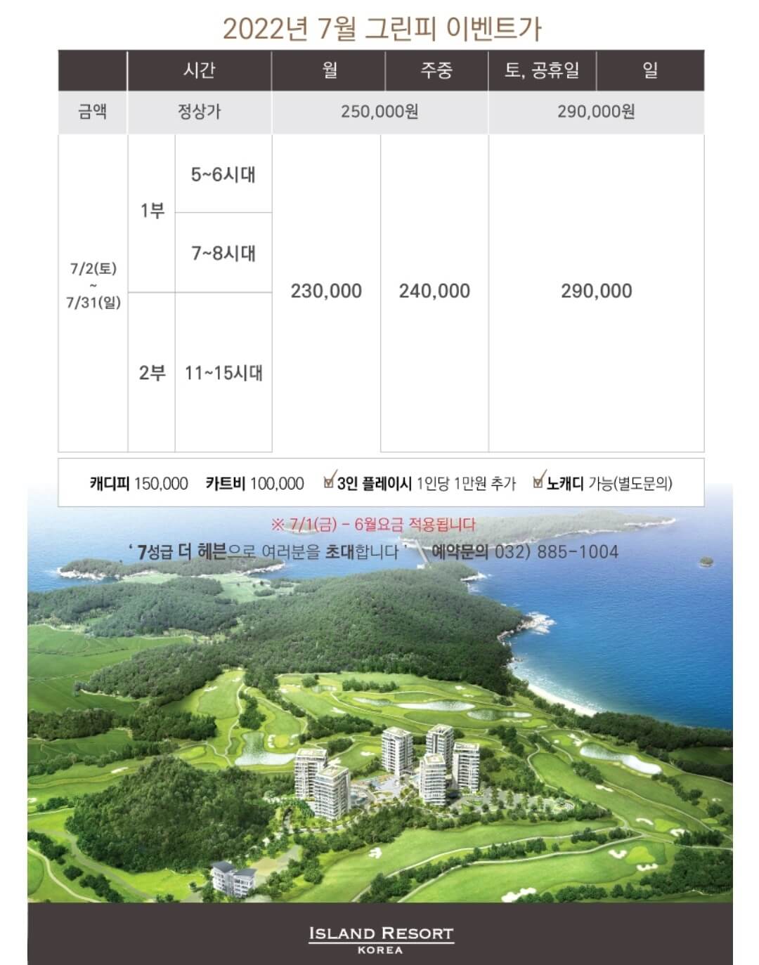 현 기준 6월. 7월 그린피 안내 사진이니 확인하시고요. 그 이후 그린피는 아래 링크를 통해 확인하세요.