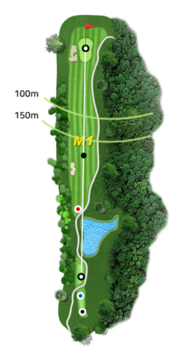 400m로 에덴블루의 전체 경치를 한눈에 내려다볼 수 있는 Par 4홀이에요. 좁고 긴 오르막 홀이라 2-On을 욕심을 부리면 오히려 안 좋은 결과로 연결될 수 있어요. 좌측에 OB가 있어 티샷과 세컨샷 모두 페어웨이 우측으로 공략하는 것이 좋아요.
