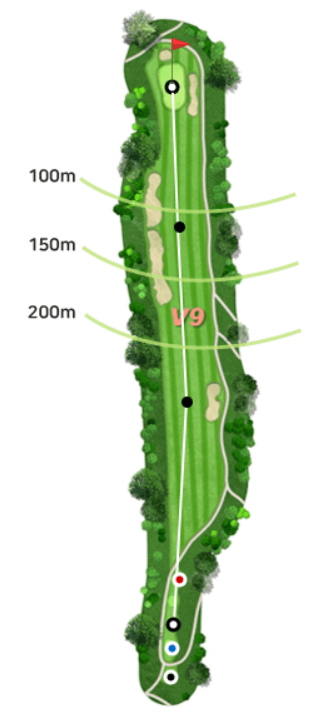 525m, Par 5홀로 부담되는 거리 때문에 2-On이 불가능한 홀이에요. 거리가 나지 않는 골퍼라면 욕심을 버리고 4-On을 노려야 해요. 전체적으로 슬라이스를 유발하는 홀로 티샷, 세컨샷 모두 페어웨이 좌측으로 하는 것이 좋아요. 그린 뒤는 보이지 않는 비치벙커가 있으니 주의해야 해요.