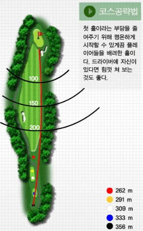 아리지 cc 햇님 코스는 9홀, Par 36, 블랙티 기준 총 3,145m 전장으로 되어있어요.
