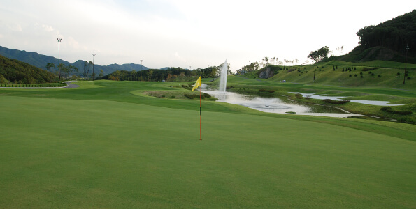 자유로 cc 대한 코스는 9홀, Par 36, 총 3,353m 전장으로 우뚝 솟은 감악산 정상을 어느 곳에서도 바라볼 수 있는 풍광이 서려 있는 코스예요. 수로 같은 해저드와 페어웨이가 잘 어우러져 티샷의 방향에 따라 성공과 실패라는 희비의 쌍곡선을 수시로 넘나들게 하는 코스랍니다.