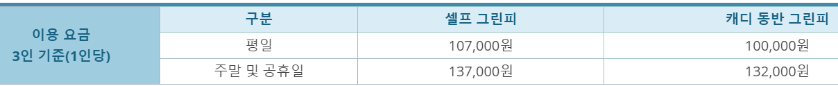 백양 우리 cc 그린피는 캐디 동반 시 4인 기준 평일은 93,000원, 주말 및 공휴일은 125,000원, 캐디피는 14만 원이에요.