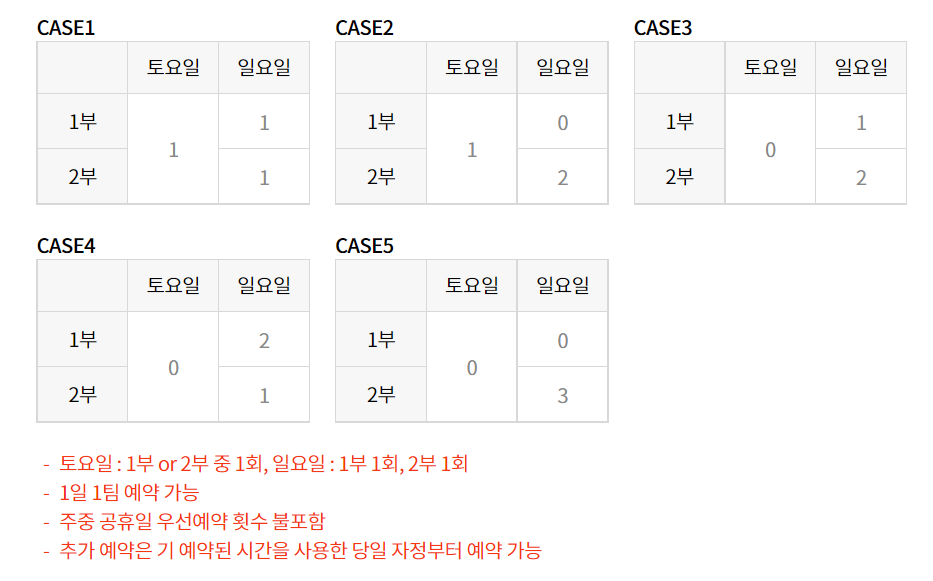 - 추가 예약은 예약된 시간 사용 후 당일 자정부터 예약 가능
