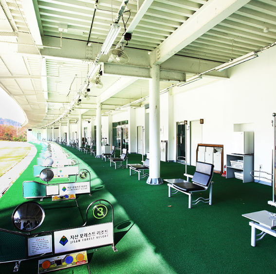 지산 CC에는 복잡한 도심의 연습장과는 차별화된 넓고 쾌적한 주변 환경과 충분한 비거리로 드라이빙의 참맛을 느낄 수 있는 골프 연습장이 있어요. 타석 전방 50야드는 천연 잔디로 실전 어프로치를 배울 수 있고 최대 350야드 이상의 비거리는 정확한 샷의 구질을 파악하는 손색이 없어요. 총 2층 46개 매 타석마다 여유로운 공간과 편안한 동선 그리고 휴게실은 골퍼에게 또 다른 안락감을 주는 골프 연습장이에요.