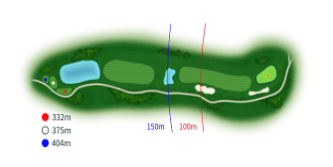거리가 긴 Par 4홀로 정확한 드라이브와 장타가 요구되는 홀이며 중앙 해저드가 있어 난이도가 높아요. 티샷은 해저드 약간 좌측을 공략하며 세컨샷도 그린 좌측을 공략하는 것이 좋아요.