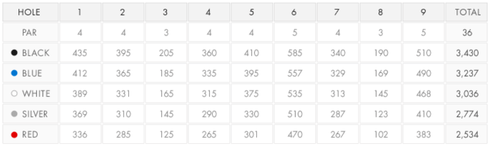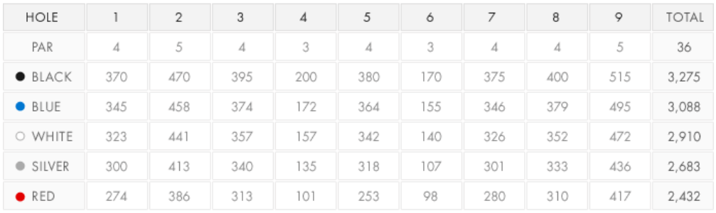 힐 코스는 9홀, Par36, 블랙 티 기준 총 3,275m 전장이에요.