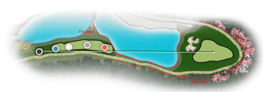 가장 긴 Par 3홀로써 아늑한 느낌을 주는 레이크를 캐리 해야 하는 부담은 있지만 그린 뒤편으로 펼쳐진 자연림의 Sky Line이 한 점의 동양화를 그려놓은 듯해요.