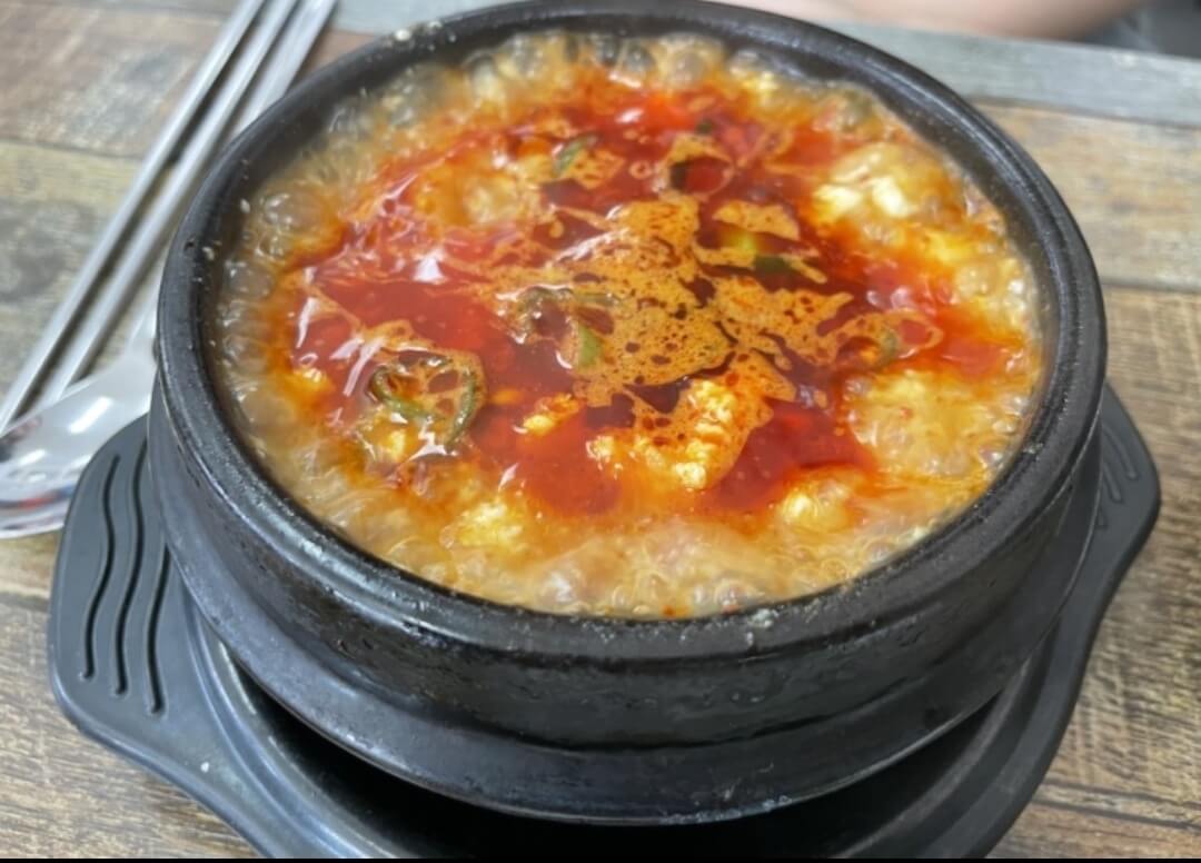 킹스데일 cc 아침 식사가 가능한 제주하르방 해장국은 킹스데일 cc에서 3분 거리에 위치해 있어요. 대표메뉴는 제주해장국(빨강), 하르방 순두부(중간맛)가 있고 그 외에 하르방 해장국(하양), 제주 순두부(매운맛), 백록 순두부(순한 맛)가 있어요. 영업시간은 오전 6시~ 오후 2시까지이고 매주 월요일은 정기휴무이니 착오 없으시길 바라요.