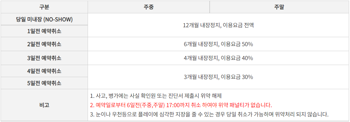 - 10팀 이상 단체 예약일 포함 14일 이내 팀 축소 시 1팀당 30만 원 위약금이 발생되어요.