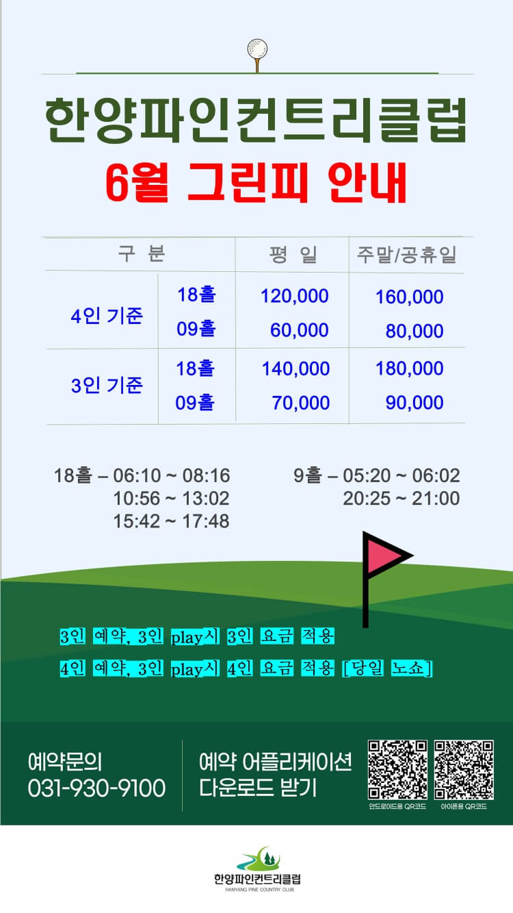 한양 파인 CC 골프 연습장 이용 요금 바로가기